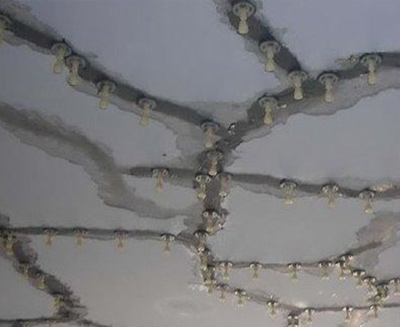 砌體墻面因砌塊開裂、抹灰不足、墻體裂縫、頂磚裂縫、砌體墻與混凝土墻粘結(jié)不良等原因造成滲漏。為了防止磚墻開裂,需要圖紙和規(guī)范來設(shè)置結(jié)構(gòu),如拉桿、結(jié)構(gòu)柱、圈梁、梁和水平梁。嚴格保證砌體施工工藝不急于求成,按規(guī)范搭設(shè)高頂砌體。